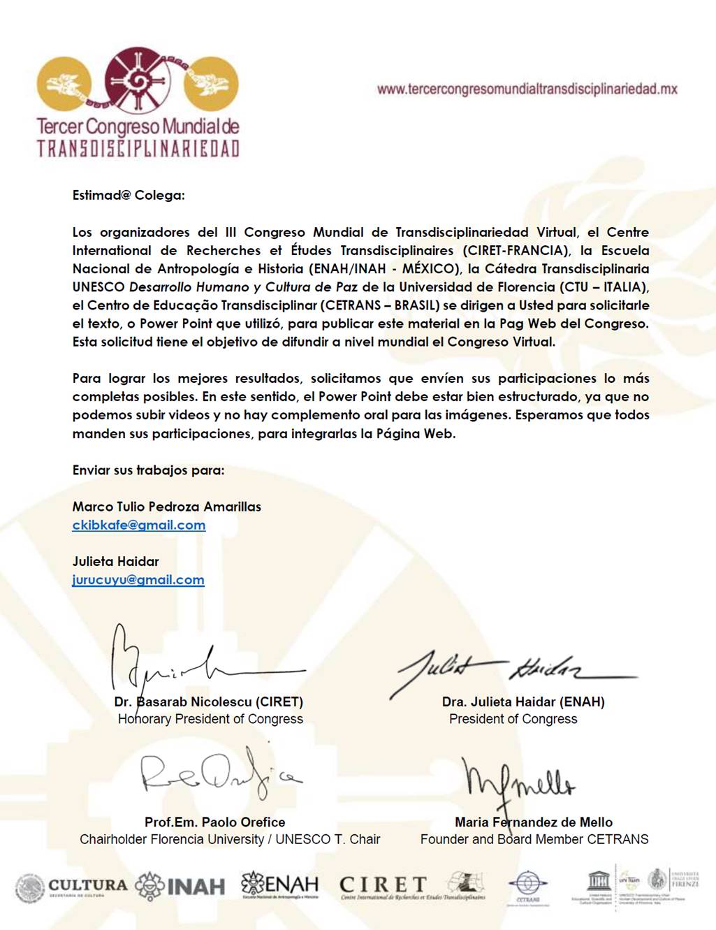 Terzo congresso mondiale sulla transdisciplinarietà. Intervento al congresso transdisciliplane UNESCO.
